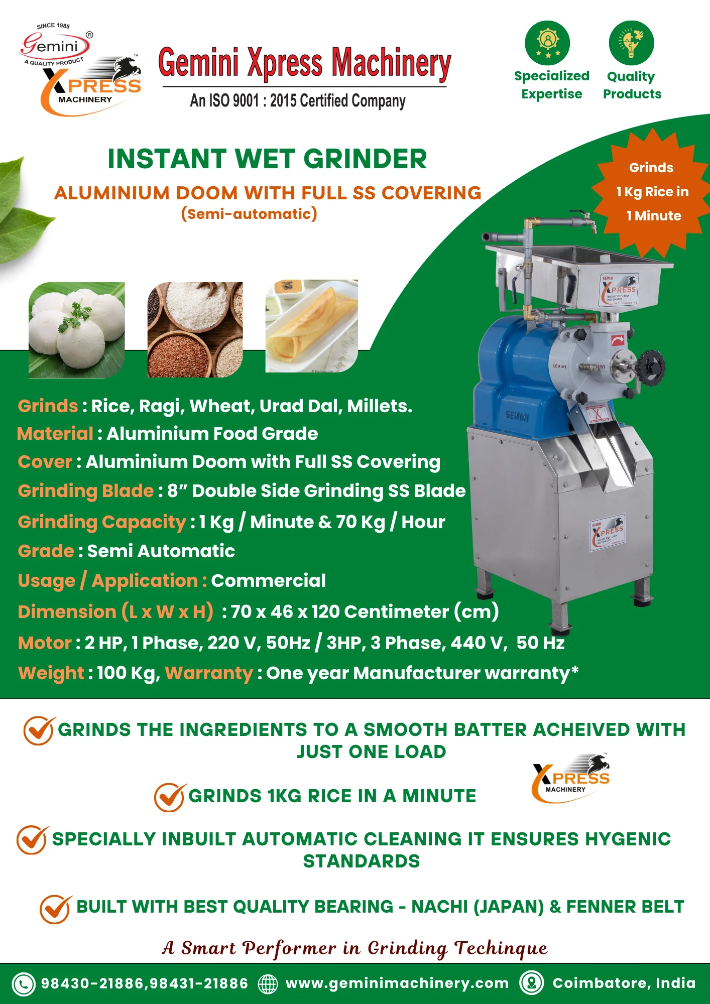 Instant Wet Grinder MODEL 2 (Aluminum Doom With Full SS Covering)